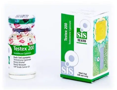 Testex 200mg/10ml, produced by SIS Labs, is a high-quality testosterone cypionate. It is an oil-based injectable hormone designed to release testosterone slowly from the injection site. This slow release results in an elevation in testosterone levels lasting for approximately two weeks (it may even go as long as three weeks for some users). Testosterone cypionate is highly favored by athletes for its ability to promote strong increases in muscle mass and strength.